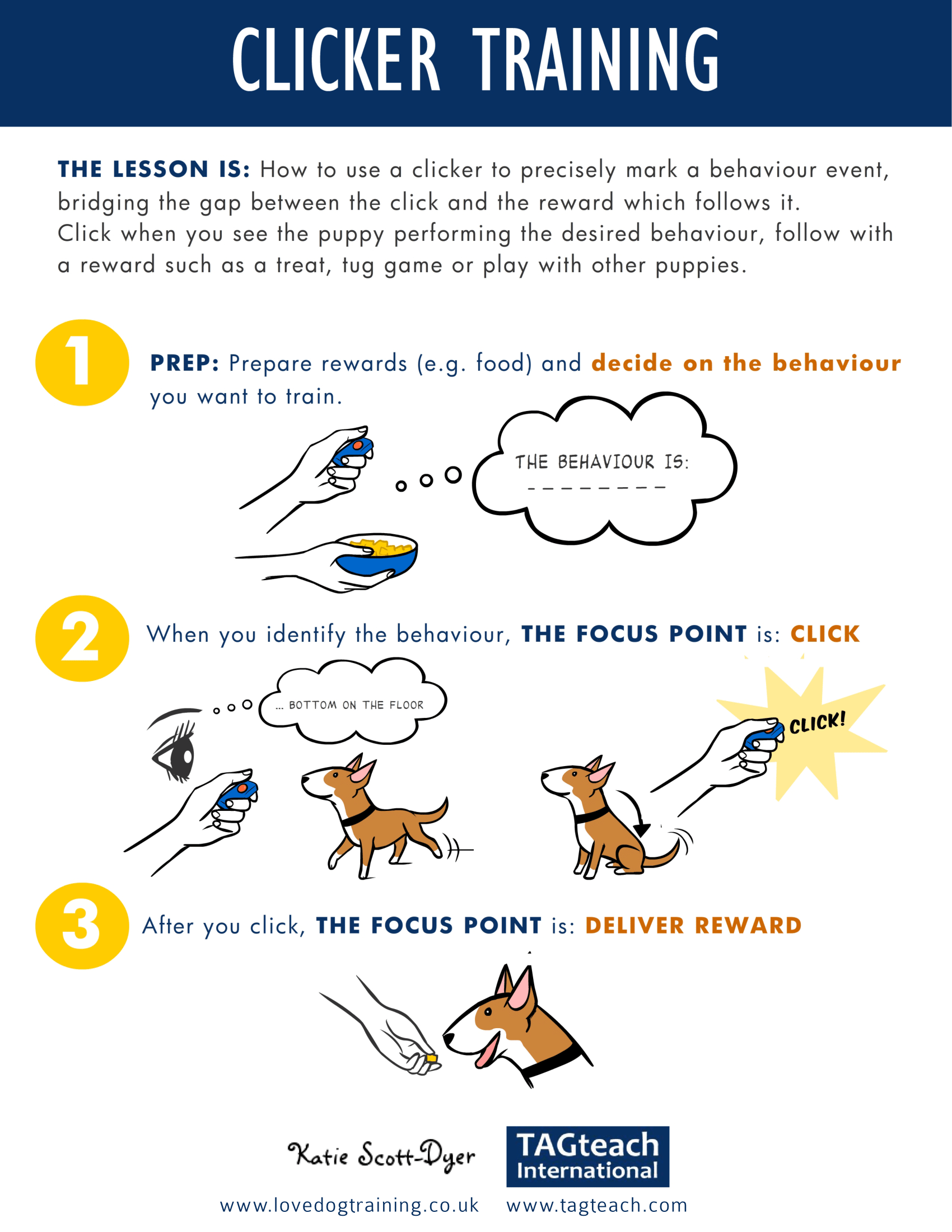Repetition is key: Aim to practice this 5 times, 5 times a day, for 5 days. By the end of the week most pets are then conditioned to the marker, and you can start to use it practically in your training!